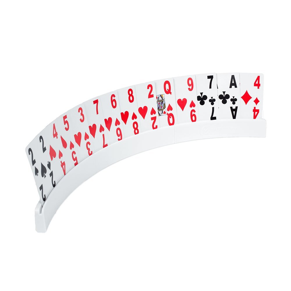 Holderen til spillekort er lettere buet, så din sidemand ikke kan lure i dine kort, og så afhjælper den problemer med finmotorikken og giver et rigtig godt overblik.