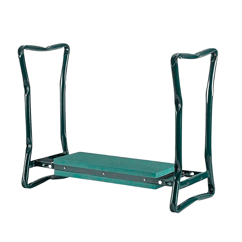 Foldable and multifunctional garden stool with handles. This garden stool can serve as both a seat and a knee pad, perfect for gardening activities.