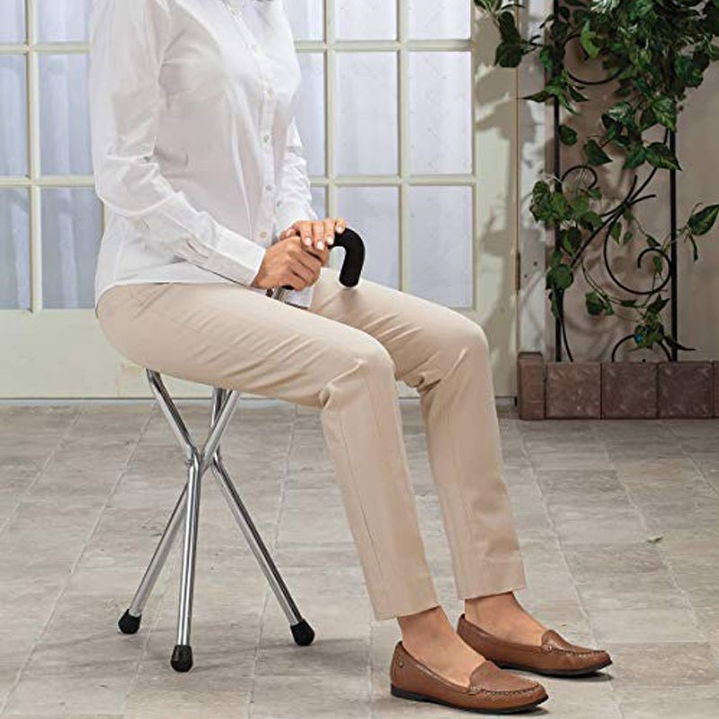 This clever folding chair cane comes with a comfortable rest seat and three legs. It instantly transforms from a cane into a seat whenever you need to pause and rest during your walk.