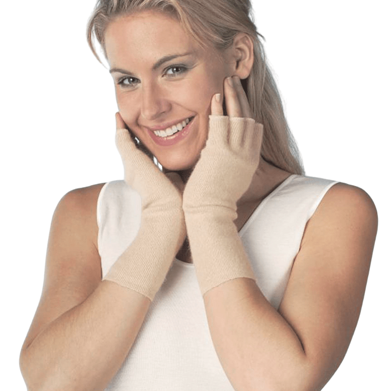 Fingerless gloves made from soft and exclusive angora wool by Peters Angora, keeping both hands and wrists cozy. As these gloves are crafted from angora wool, they offer both insulation and self-heating properties.