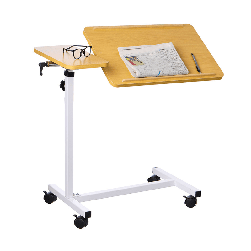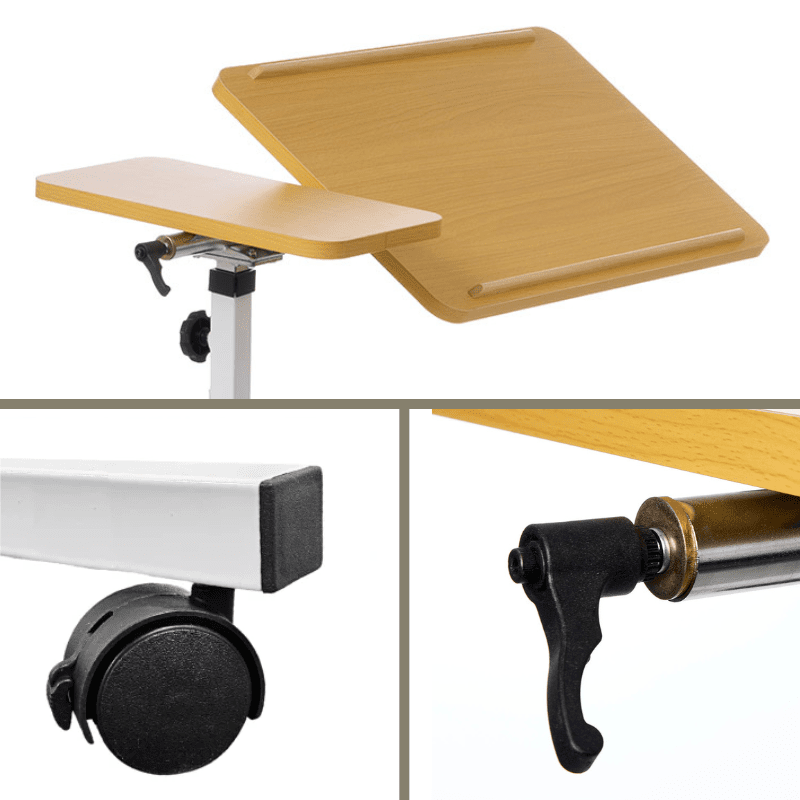 The table height is fully adjustable and it can be positioned from either the right or left side of the bed for maximum flexibility. It's just as useful beside a chair or wheelchair as it is at the bedside.