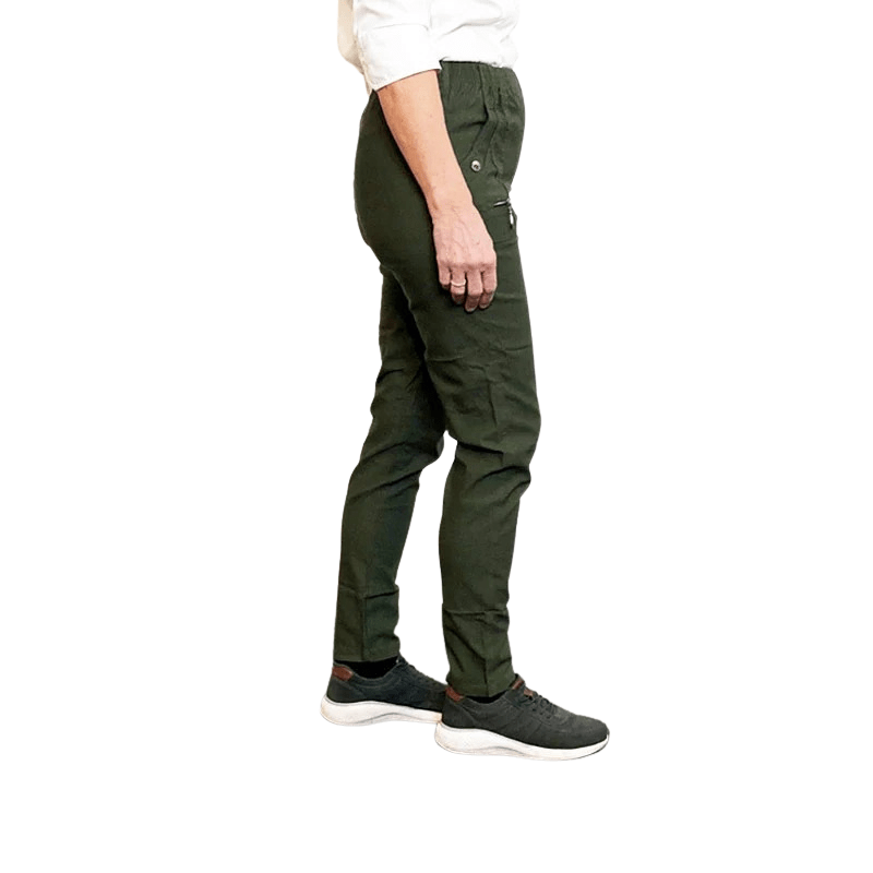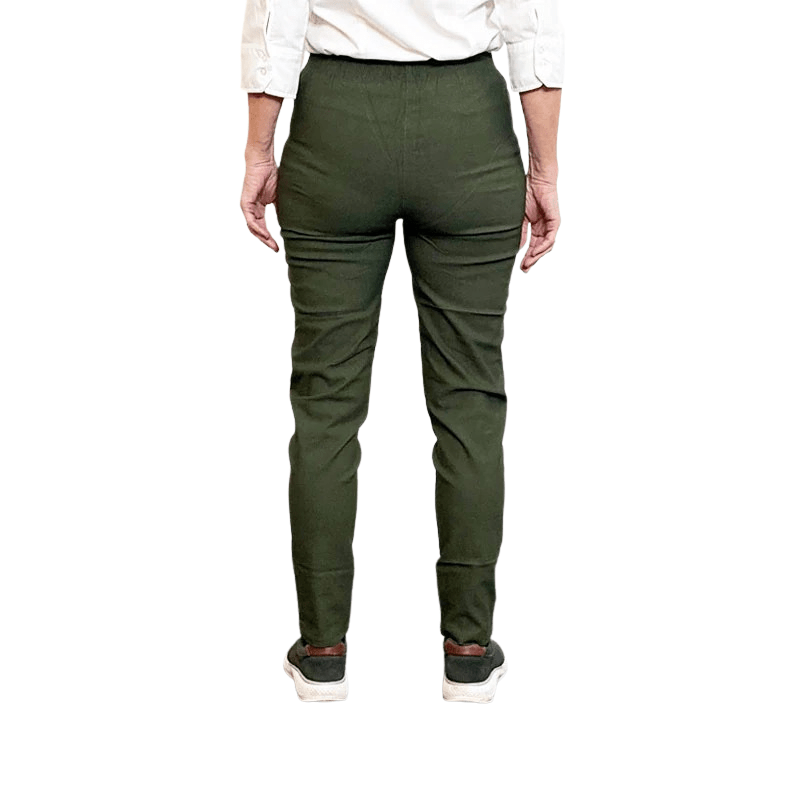 Chic and comfortable pants in a rich olive green, featuring a sewn-in elastic waistband that flatters most body shapes.