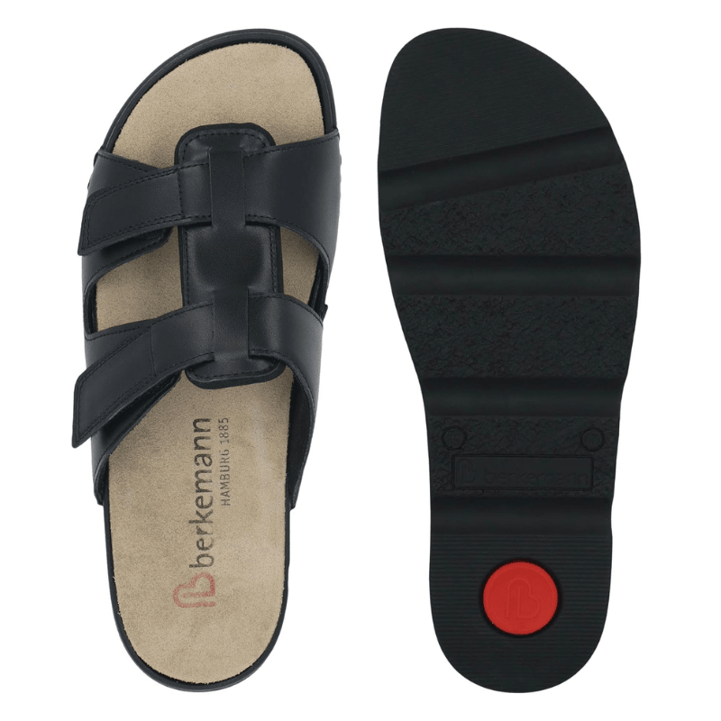 Light and airy women's sandal from Berkemann in black leather with a simple and stylish design.