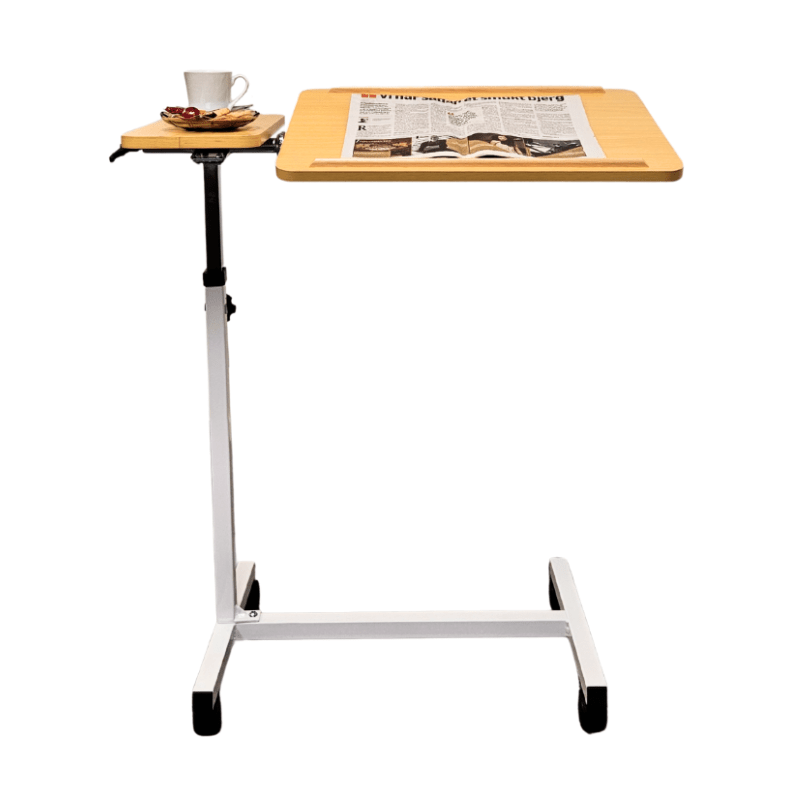 The table height is fully adjustable and it can be positioned from either the right or left side of the bed for maximum flexibility. It's just as useful beside a chair or wheelchair as it is at the bedside.