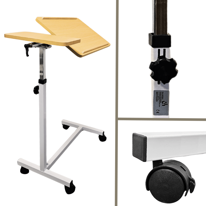 This adaptable overbed table is perfect for use with both beds and wheelchairs. Thanks to its four swivel castors—all lockable—you can easily roll it into place wherever you need it most.