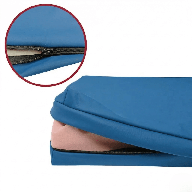 Pressure-distributing cushion made from viscoelastic foam with waterproof Cover included, helping to prevent or manage pressure sores and other skin damage.