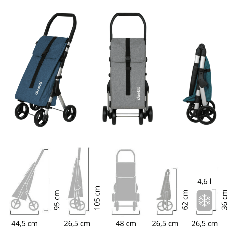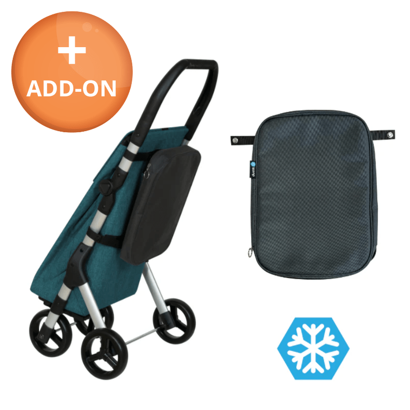 Som noget helt særligt for denne model, har du mulighed for at tilkøbe en aftagelig køletaske på 4,6 liter, som nemt fastgøres bag på indkøbsvognen. Køletasken er perfekt til kølevarer og holder dine madvarer friske på hele turen hjem.