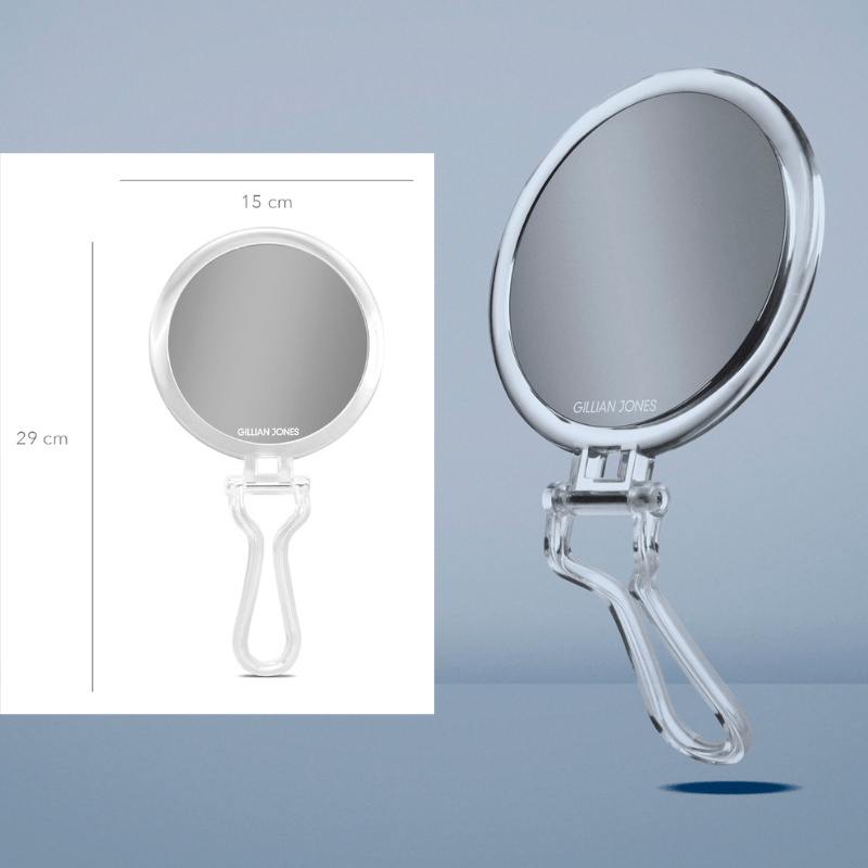Spejlet kan bruges som håndspejl med henholdsvis 1x og 7x forstørrelse. Du kan hænge spejlet på væggen vha. hullet i håndtaget eller "folde" håndtaget og stille spejlet på bordet i en vinkel. Spejlet har en diameter på 15,5 cm.