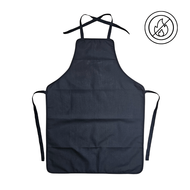 Dette praktiske forklæde er fremstillet i brandhæmmende aramidfiber og beskytter tøj og hud mod gløder og væske. Det bindes let med stropper i nakken og om livet. Forklædet er marineblåt, slidstærkt og kan vaskes hyppigt.