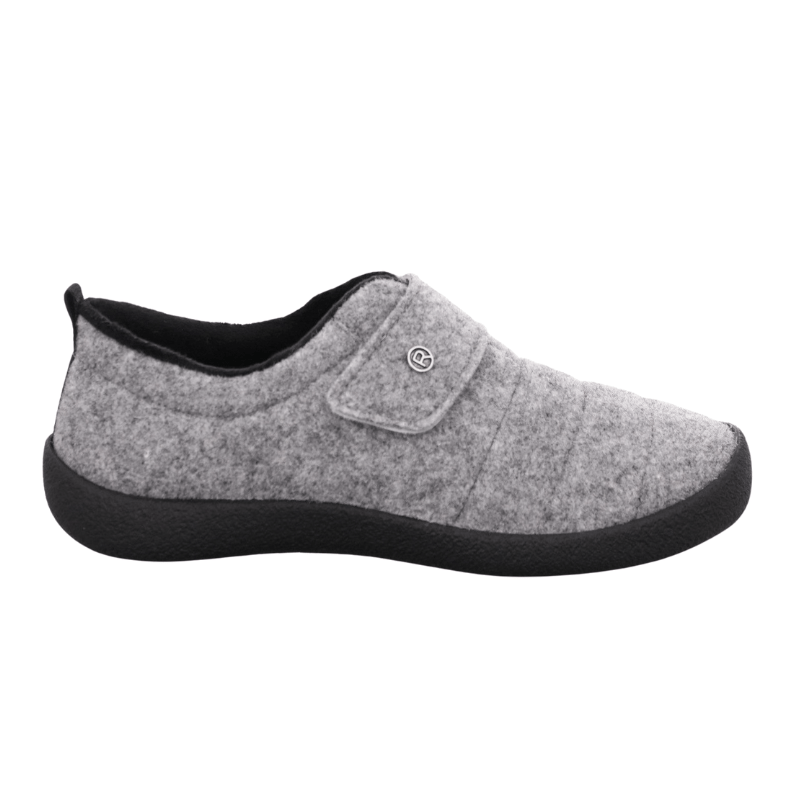 Lækker ortopædisk hjemmesko med overdel i blødt filt i høj kvalitet, der omslutter foden med varme og komfort. Den udtagelige indersål giver god støtte og kan erstattes med egne specialindlæg efter behov.