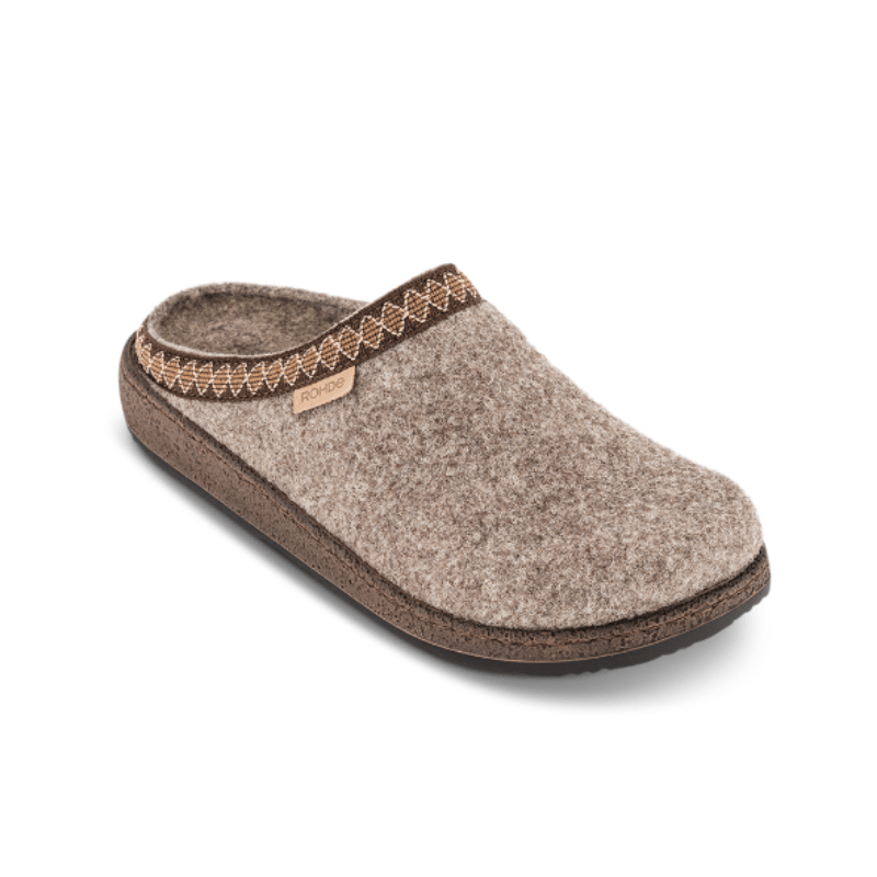 Komfortabel lys brun Rohde damehjemmesko i blødt filt, som holder fødderne lune hele dagen.